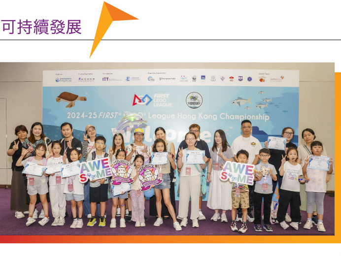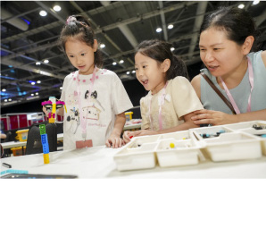 今屆FLL香港錦標賽於7月26至27日在亞博館圓滿舉行,吸引了超過300支本地及海外隊伍參賽,場面盛大。今年比賽主題是「SUBMERGED 」海洋探索,學生以創意與技術喚起永續海洋的重要性。參賽隊伍須展現創新、編程、解難及團隊合作,除了動手設計機械人執行一系列水底任務,更要時刻調整比賽策略。活動兩日吸引逾3,000名學生、超過500位教師及業界人士參與。亞博館更特別與主辦單位合作舉辦親子編程工作坊,邀請東涌社區家庭參 與,即使年僅6歲的小朋友也能透過遊戲學習編程。在 「玩住學」的愉快氛圍中,STEAM教育不再是精英的 專利,而是人人都能參與的快樂旅程。